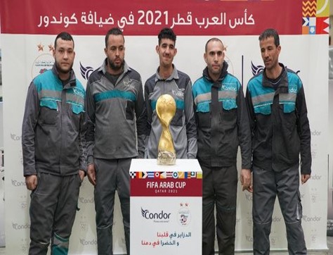 بعد اللقب العربي الذي أحرزه المنتخب الوطني "أ" في قطر ، قامت الكأس برحلة لزيارة موظفينا في وحدات إنتاج كوندور في برج بوعريريج. تم تنظيم جلسة تصوير لجميع عمال الشركة لتخليد هذا التكريس الجميل ، فخر جميع الجزائريين بشكل عام و كوندور وجميع عمالها بشكل خاص